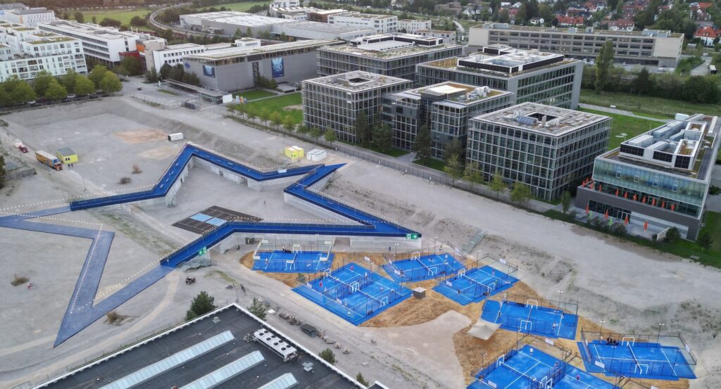 Eingebettet in ein Zwischennutzungsprojekt einer temporären Baugrube findest Du 10 moderne Full-Panorama-Outdoor-Padelcourts. Ob zum ersten Mal auf dem Court oder als erfahrener Spielerin – bei uns findest du Bewegung, Community und jede Menge Spielspaß!